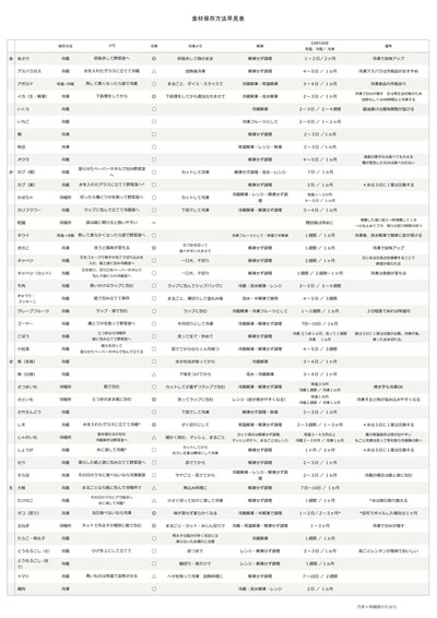 野菜・果物の保存方法を一覧表にまとめた工藤さんのブログ。