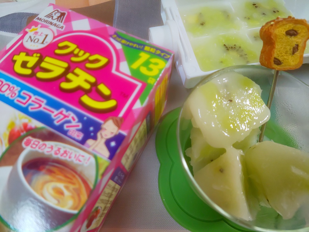 森永のクックゼラチンを使ってキウイのカルピスシャーベットを作りました。牛乳で割ったカルピス にレモン果汁、グリーンキウイを入れて爽やかな味わいに。柔らかな少しシャリっと感もあるゼリーアイスです。暑さが続エンゼルPLUS by 森永製菓。