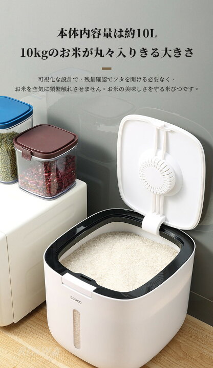 米びつ 10kg お米収納 おしゃれ キッチン用品 キッチン収納 保存容器 ボックス プラスチック ホワイト グレー ブラック 米びつ 10kg お 米収納 おしゃれ キッチン用品 キッチン収納 保存容器 ライスボックス プラスチック 防虫 計量カップ付属 インテリア アイデア雑貨。