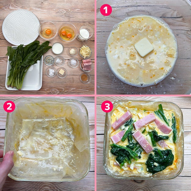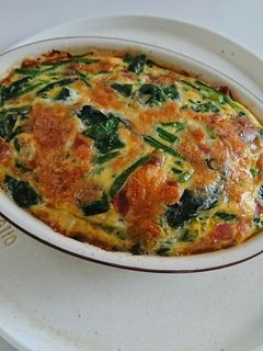 リメイク 焼くまで3分♡生地なし♡ほうれん草のキッシュ♡。