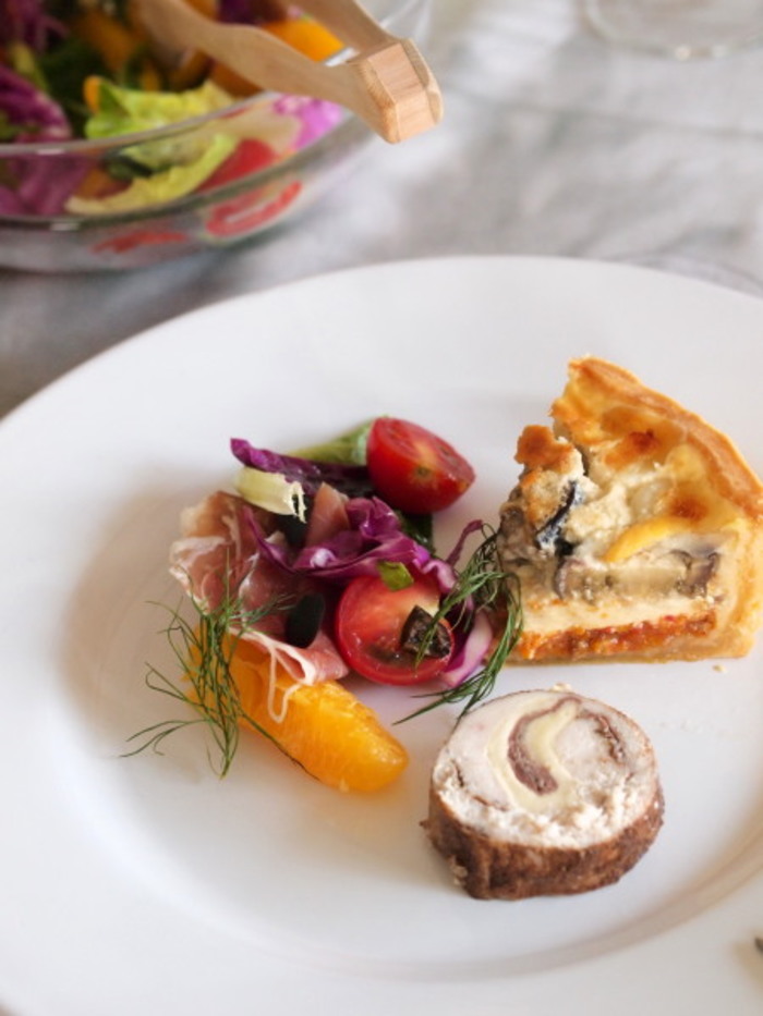 パイ生地なしのキッシュふんわり卵と香るきのこの軽やか仕立て。