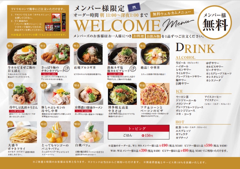 12 1〜深夜メニューがスタート!フードメニューのご提供時間変更のお知らせ港北・綱島にある高級カップルズホテル ベラカーサM。