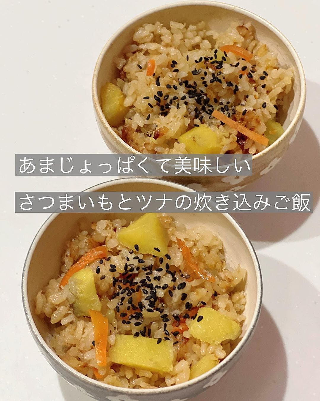 さつまいもの炊き込みご飯🍠@hinata_gohan.1012さんの投稿をお借りしました! ⁎⁎⁎⁎❁ ❁ ❁.*・゚ さつまいもの炊き込みご飯 𝘳𝘦𝘤𝘪𝘱𝘦 ゚・*.✎𓂃 いつも一本使い切るのが。