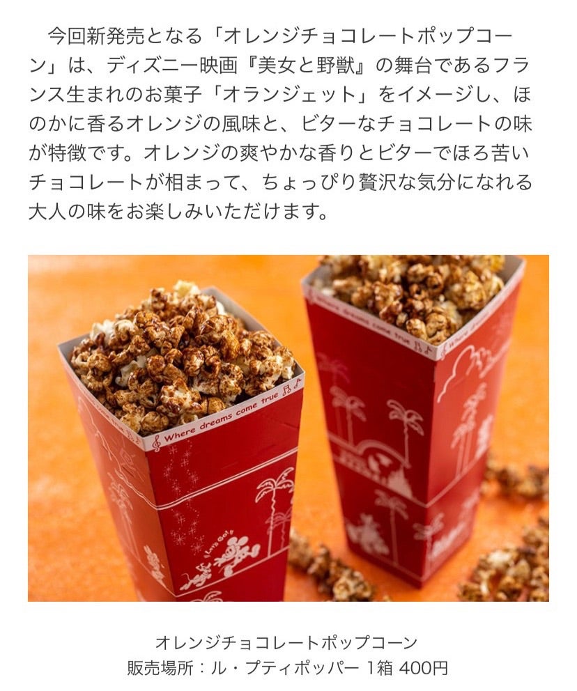 新デザインのポップコーンバケットも登場 東京ディズニーランド『オレンジチョコレートポップコーン』2021年11月1日発売。