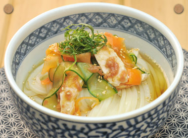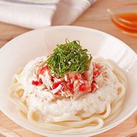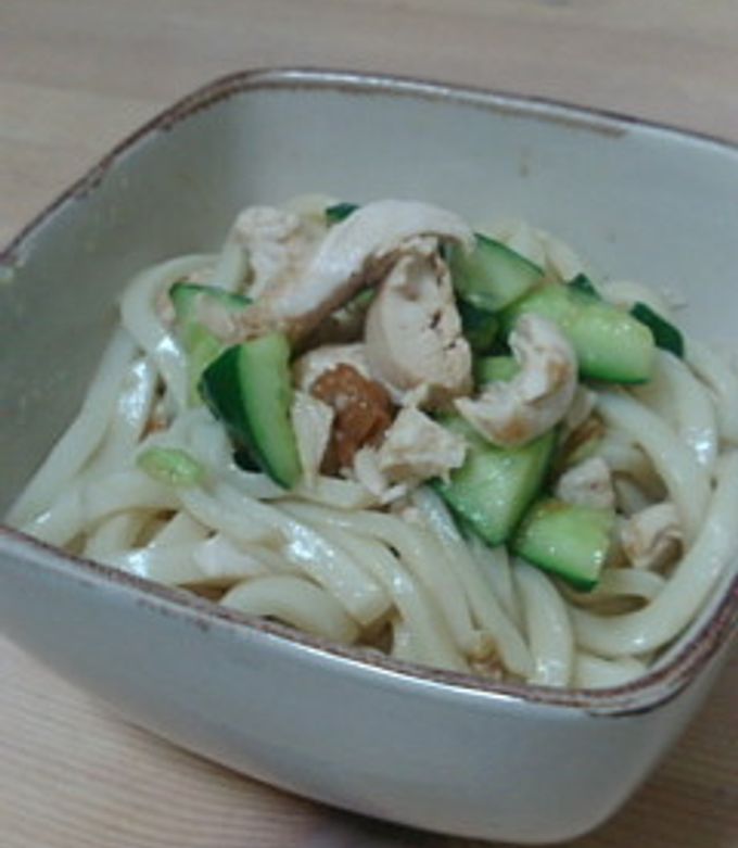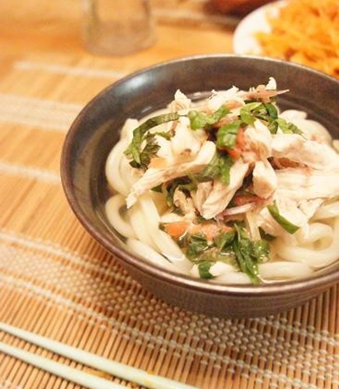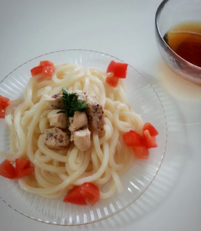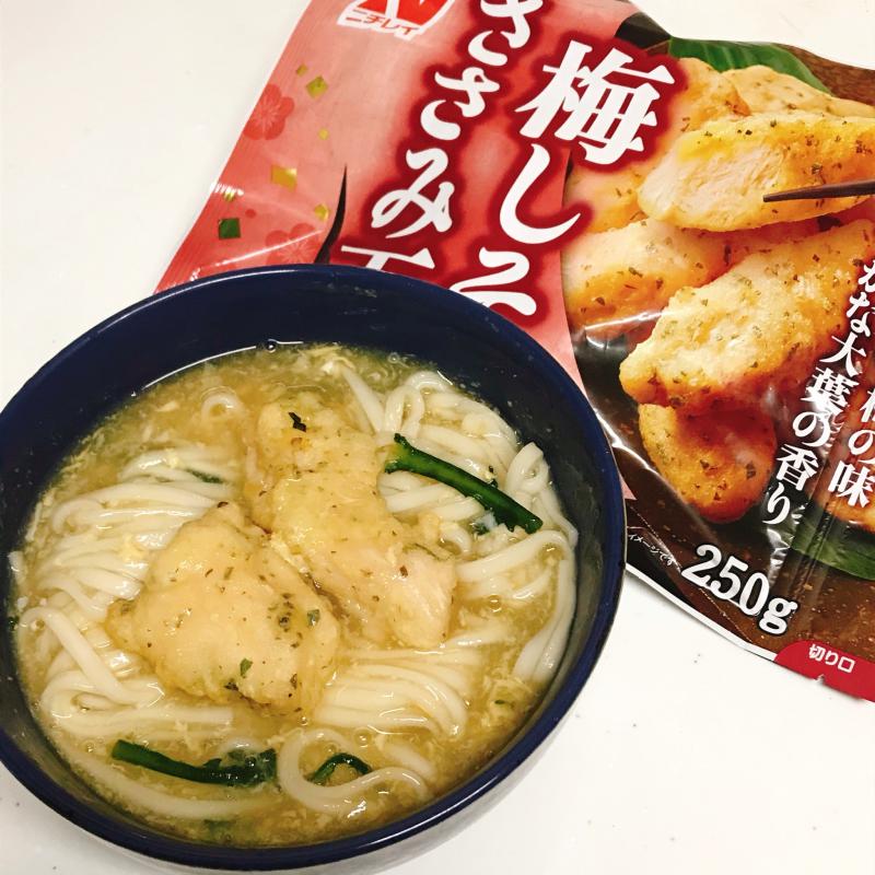 梅ささみうどん 暑い日にさっぱりうどん。 蒸してふっくらしたたっぷりのささみに、 梅干しの酸味で、暑い毎日を乗り切れます! 冷凍うどんに、塩麹に漬けた ささみをのせ、 酒、みりんを回しかけて、7〜10分。 途中5分くらいで、ささみを裏返すと火が通りやすいです。