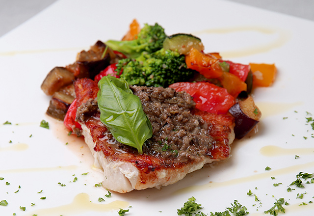 赤魚と野菜のタプナードソースつくばイタリアンレストランのアペティート。