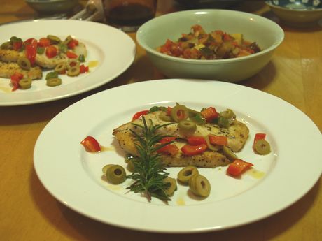 今夜もイタリアン!: 白身のソテー ケッパーとオリーブオイルのソース。