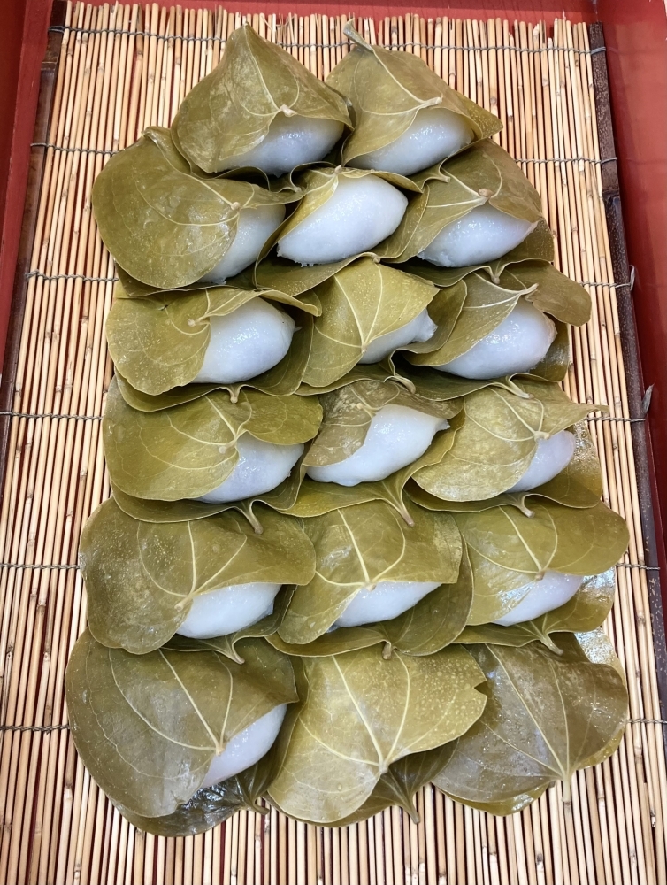 柏餅、西日本の場合 柏餅は丸包み一般社団法人 日本和食卓文化協会。