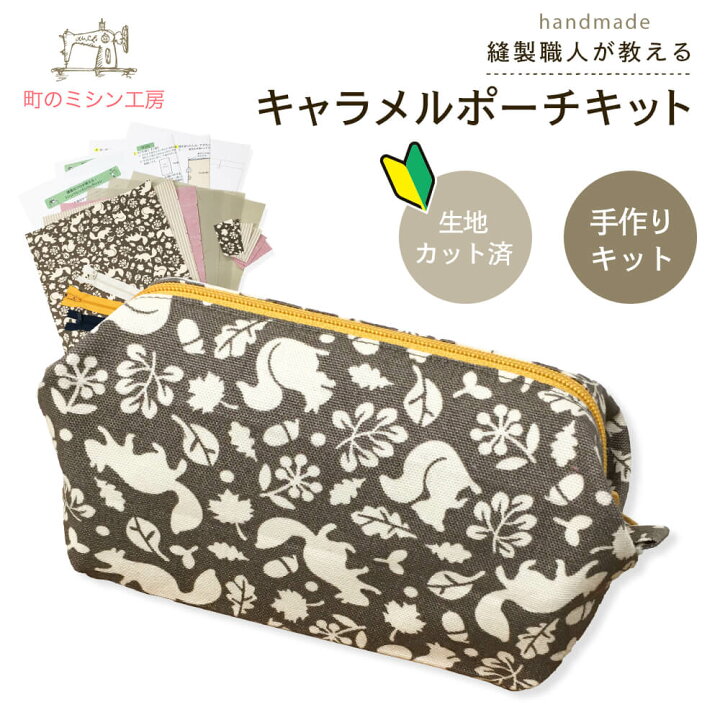 楽天市場 手作りキット キャラメルポーチ 縫製のプロが教えるミシンでレッスンコレクション 生地カット済ハンドメイドキット 手づくりキット 手芸キット初心者 子供 大人 簡単 日本製 : 町のミシン工房。