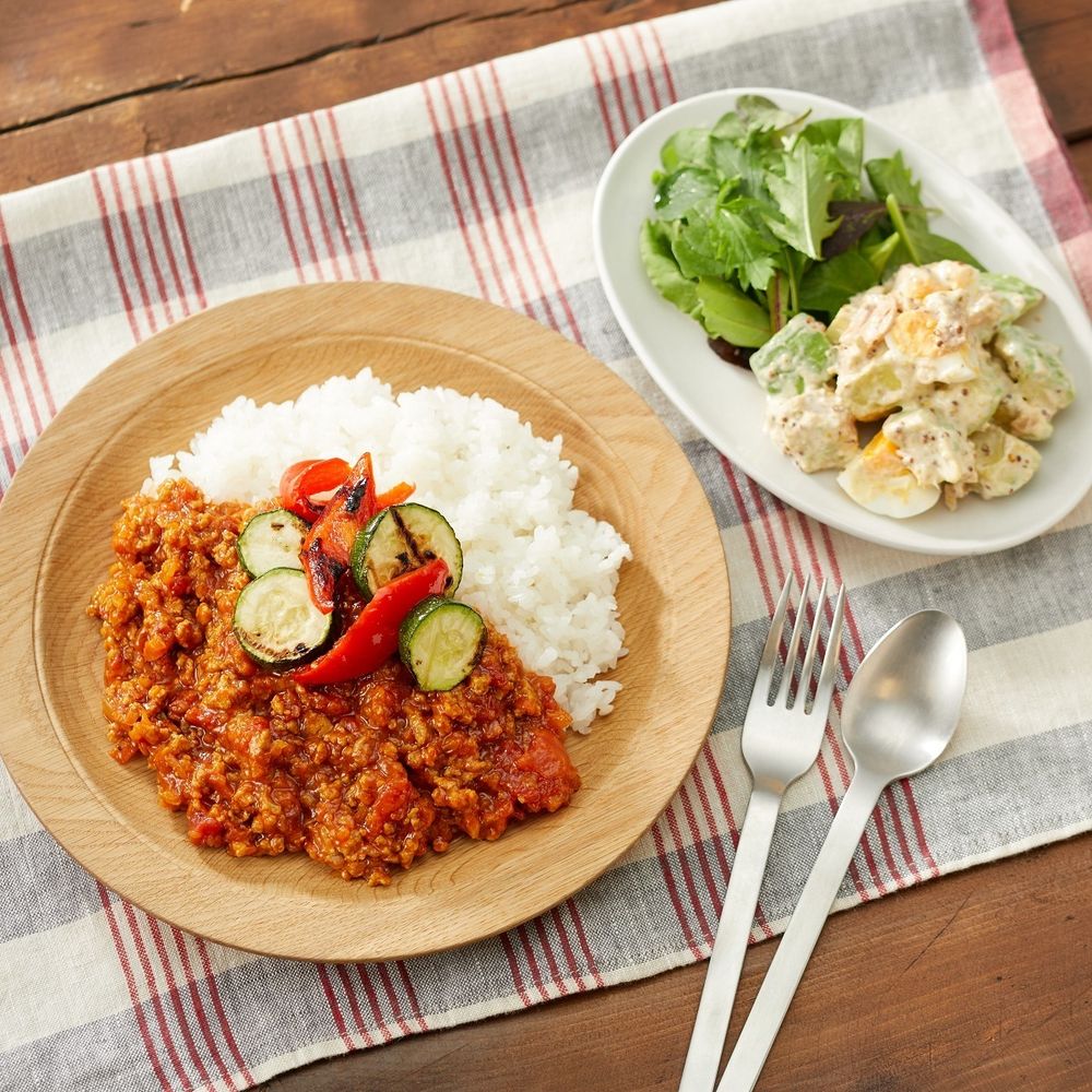 夏野菜のキーマカレー ハムサラダ 食材宅配のヨシケイ 夕食ネット レシピ・メニュー・献立付き。