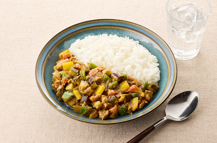 優れだし」夏野菜のキーマカレーレシピ 優レシピ株式会社シマヤ。