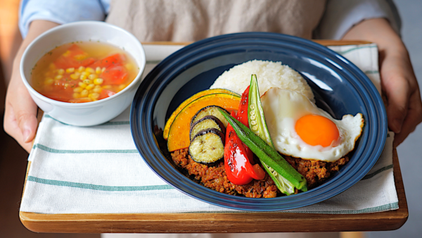 8月の行事食ー夏野菜キーマカレーMedical Topia Style。