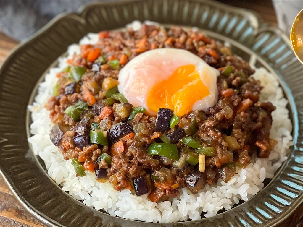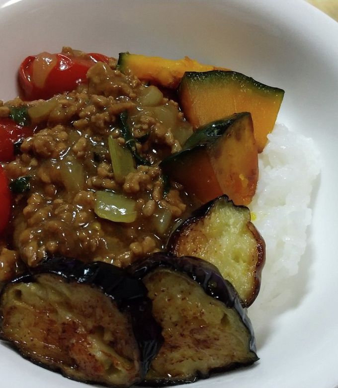 管理栄養士おすすめ 素揚げ夏野菜のキーマカレーのレシピ!レンジ利用で20分以内で作れる簡単ポイント。