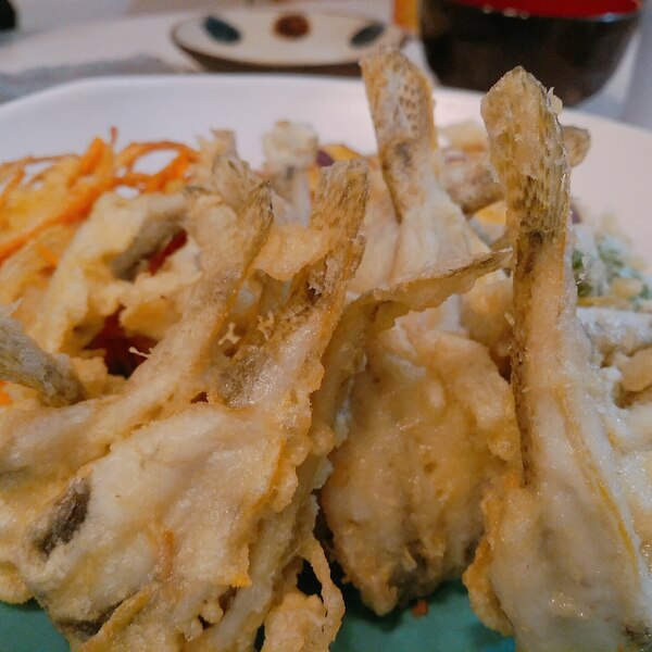 ハゼの天ぷら 。キスとはまた違った美味しさ。ふわふわしてます。骨せんべいも美味しいです。揚げたてが一番ですが家庭の食卓では難しい。お鍋のように家族で揚げながら食べてる方いらっしゃいますか?マホロバの釣り人。