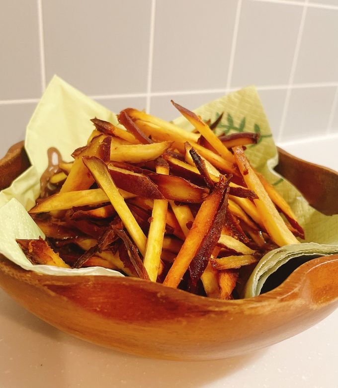 ハニーバターをたっぷりつけて召し上がれ!フライドさつまいものレシピ。