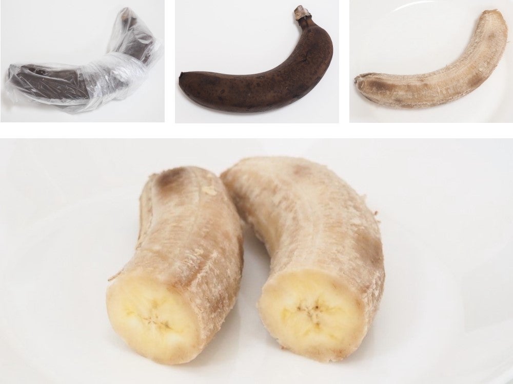 幸野ゆりあ🍎Yulia K on X: "えっ!?🍌 バナナ 冷凍したらアイスみたいになるかな?と思って冷凍してみたけどカチコチで解凍に時間かかりそうだから冷蔵にいれてたらブヨブヨ真っ黒バナナになってるのだが!??腐っちゃった!?😭 でも中身は黒くないしいけそうだよね。