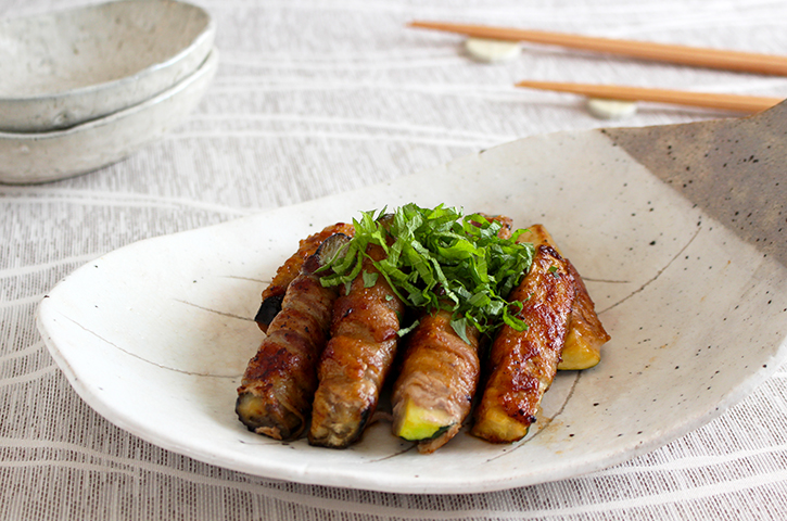 ナスとズッキーニの豚肉巻き、甘辛にんにく焼き。miyukiのスマイルキッチン。