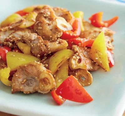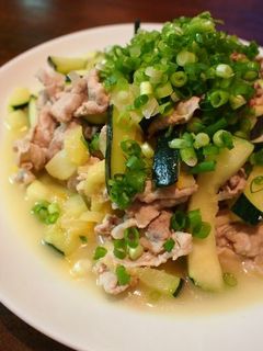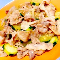 レモンとにんにくが香る♡ 豚肉とズッキーニの甘酢レモン炒め。
