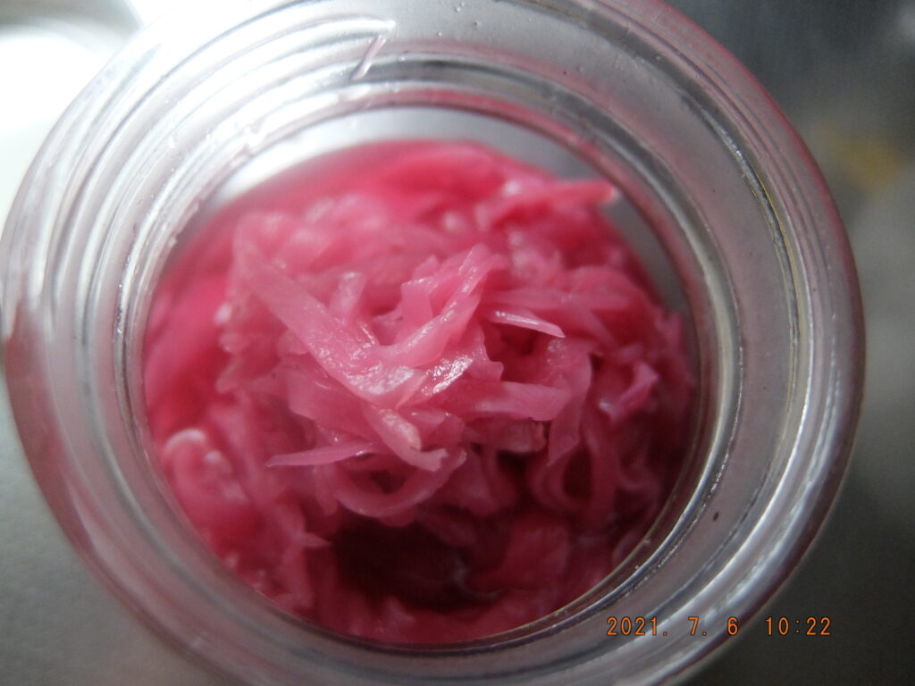 新生姜の甘酢漬け ほぼ天女の羽衣です。これを見るためだけに毎年漬けています。
