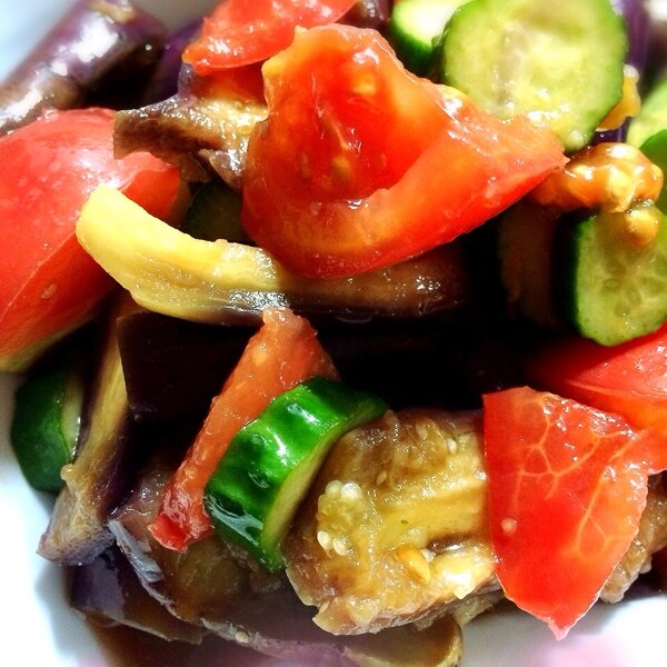 オリーブオイルでさっぱりと☆夏野菜のかんたんサラダ。