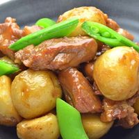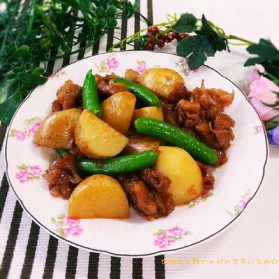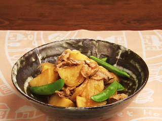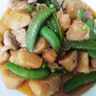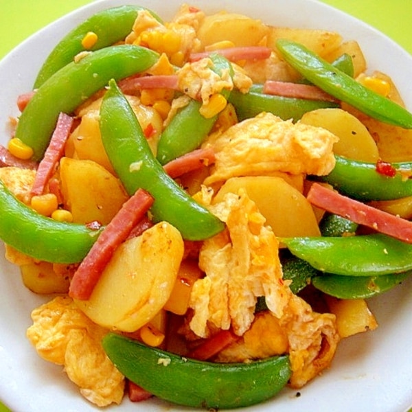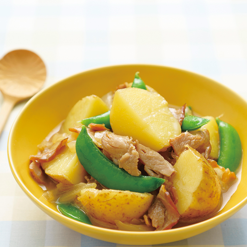 豚小間・じゃがいも・スナップエンドウの中華風炒。