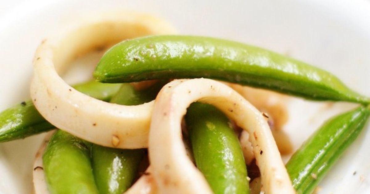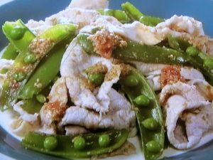 「きょうの料理ビギナーズ」スナップえんどうと豚しゃぶの梅あえ。