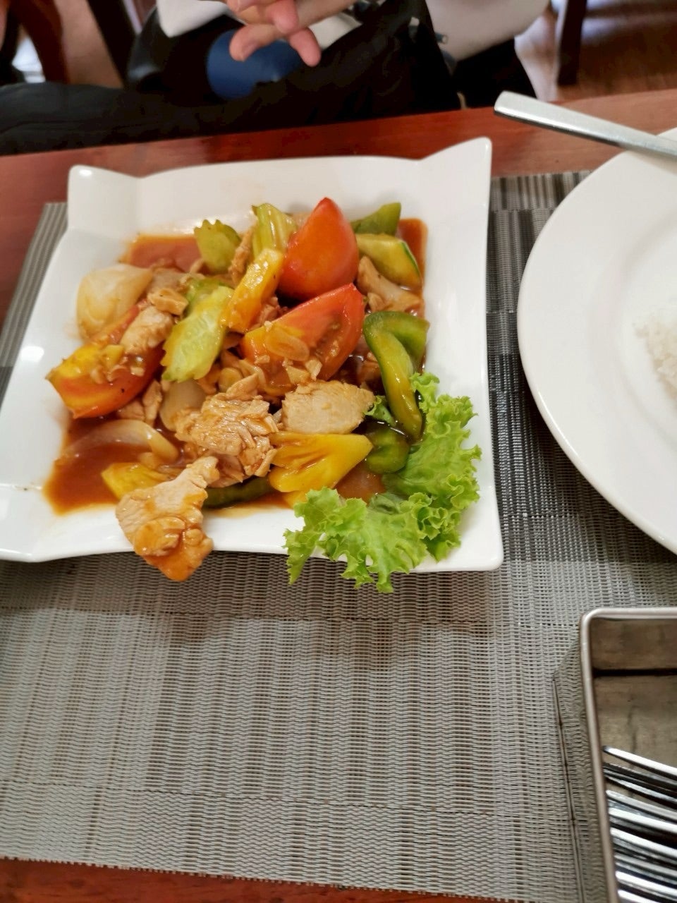 アンコールワット シェムリアップ リーリーレストランのおすすめ料理「アヒルの肉とご飯」 プレアヴィヒアガイド カンボジアガイド。