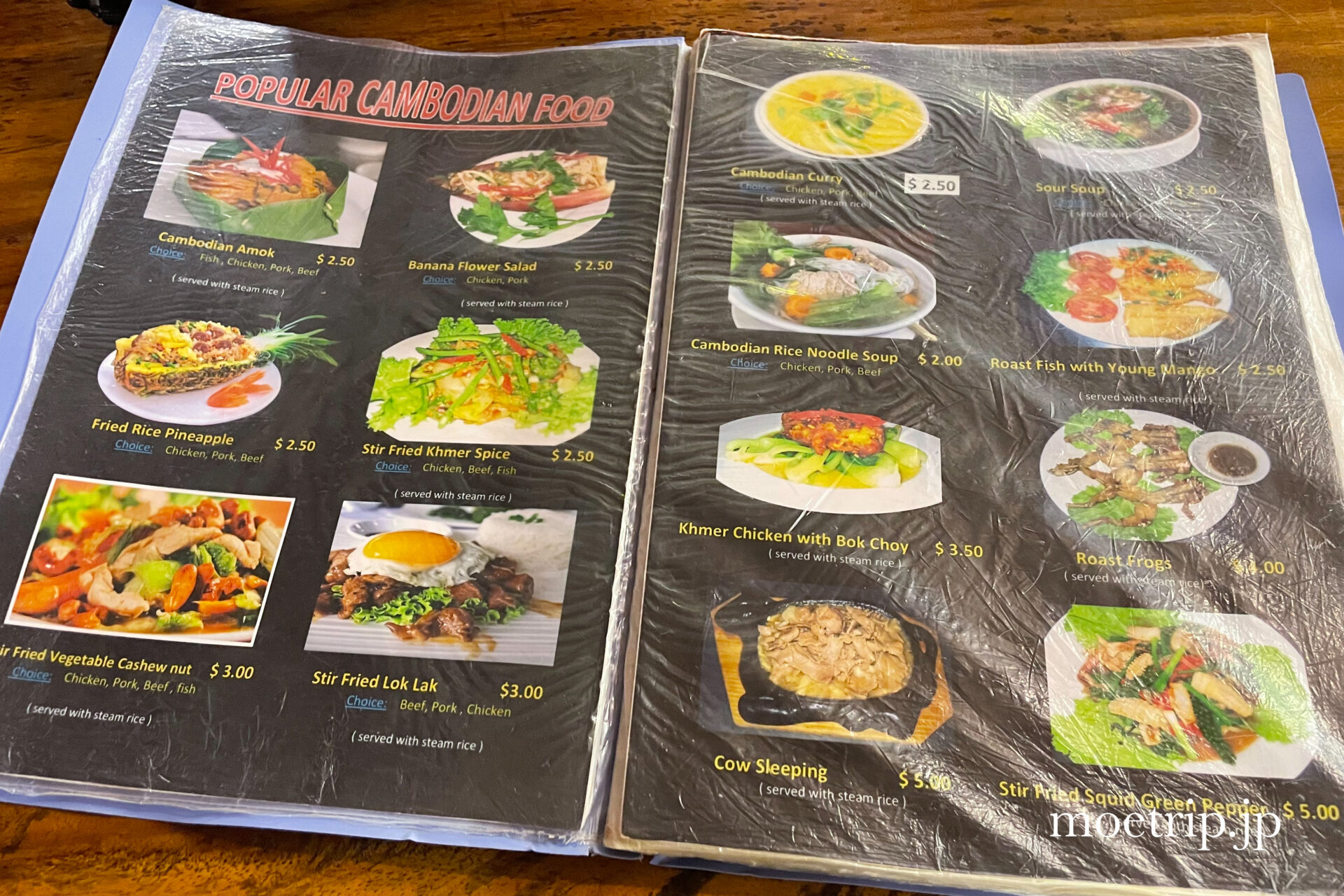 カンボジア料理がならぶローカル・レストランの利用の仕方とメニューのご紹介カンボジア海外旅行・シェムリアップ便り from アメミル。