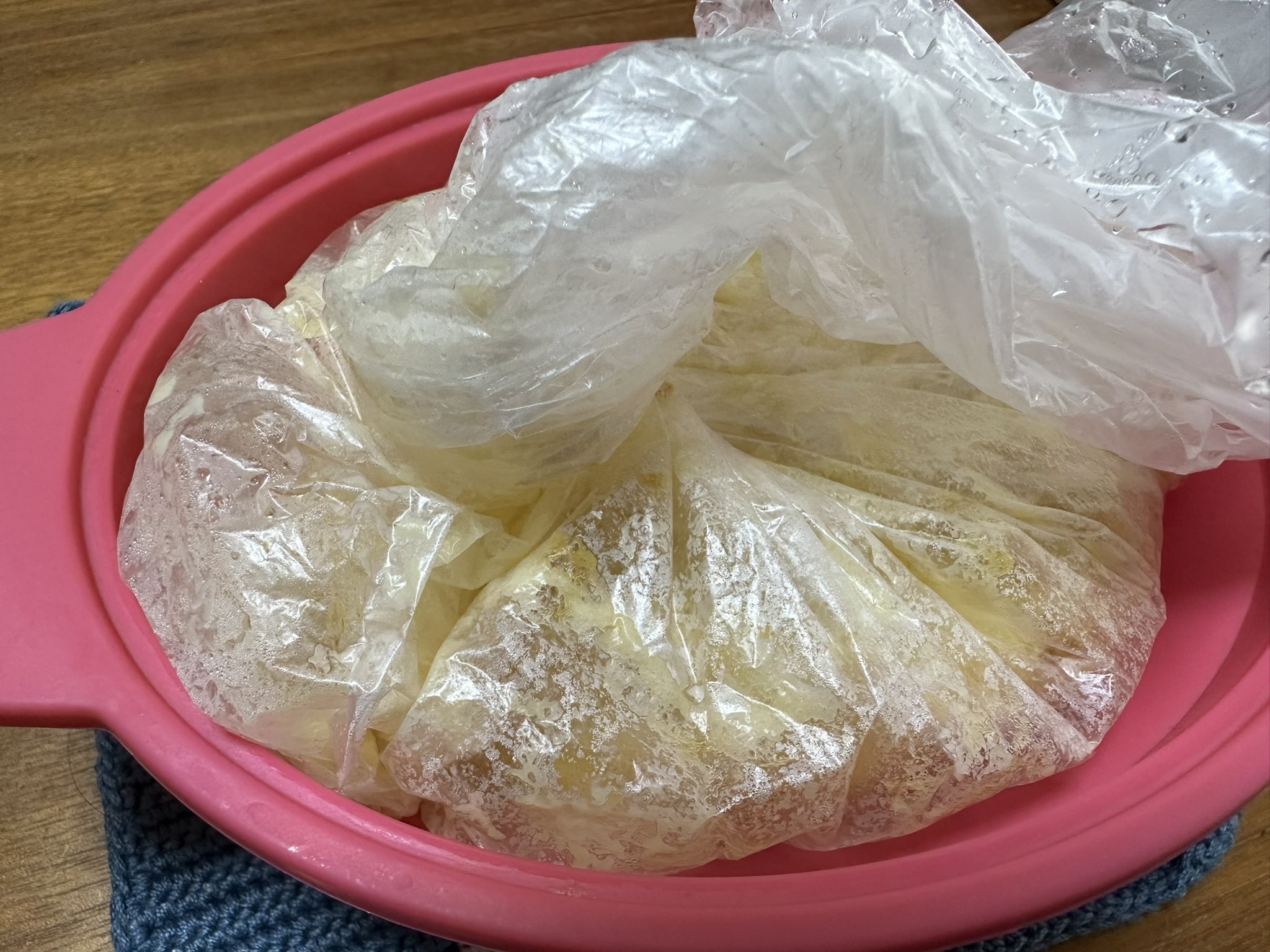管理栄養士さおママずぼら×ワンオペ週6ワンオペのお助け食品卵アレっ子育児簡単時短おやつアイラップで混ぜてチン!簡単いちご蒸しパン🍓疲労レベル😭😭 まあまあ※😭ちょびっと、😭😭😭MAX . レンジ加熱OK🙆♀️の食品用ポリ袋『アイラップ。