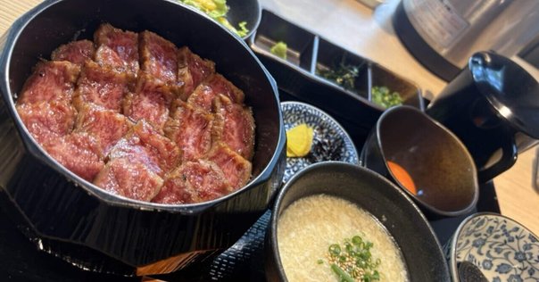 🐃 焼肉 水本 高井店松山市🔖@yakiniku_mizumoto ︎︎︎︎☑︎ 黒毛和牛 肉まぶし ¥2900さっぱり醤油味・しっかり味噌味 お肉が柔らかくてとっても美味しかった~~~🥢✨ ミニデザート付きです🍴︎♡ しっかり量があるので、お腹を空かせて行くのを。