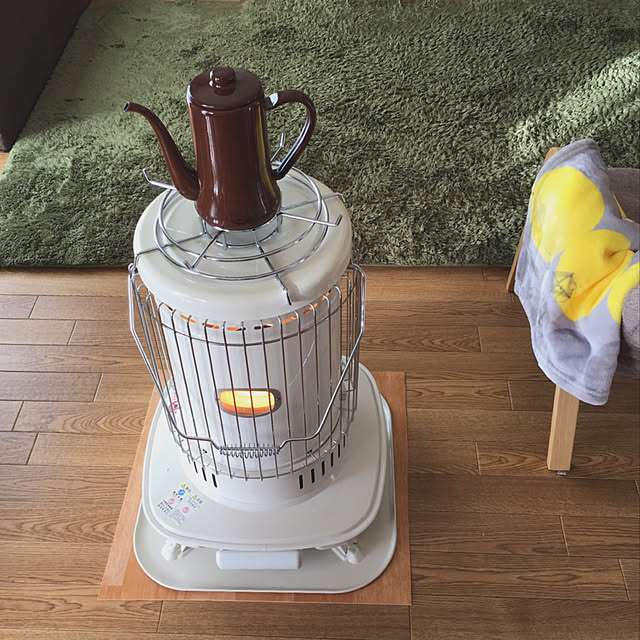 一夜明けると冬でした。 冬のメインコンロが出てきました🔥 お湯が沸き、お鍋ができるストーブは優れもの。ヒーターもエアコンも役立たず、と言われてます ごめんね☺️ ※注意書きには「ストーブの上にいふ。