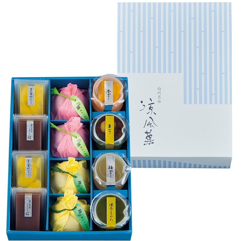 一箱にこんなに?と思うほど、バラエティ豊かな詰合せ「涼風菓」。, 日本の果実や和の素材を使って、夏の暑さやわらぐ冷たいお菓子を作りました。,夏の贈りものに。,シャトレーゼchateraise手土産夏ギフト差し入れ贈りもの白州名水ギフト贈り物お中元頂き物手土産スイーツゼリー水ようかんわらび餅ぜんざいみつまめ和スイーツ。