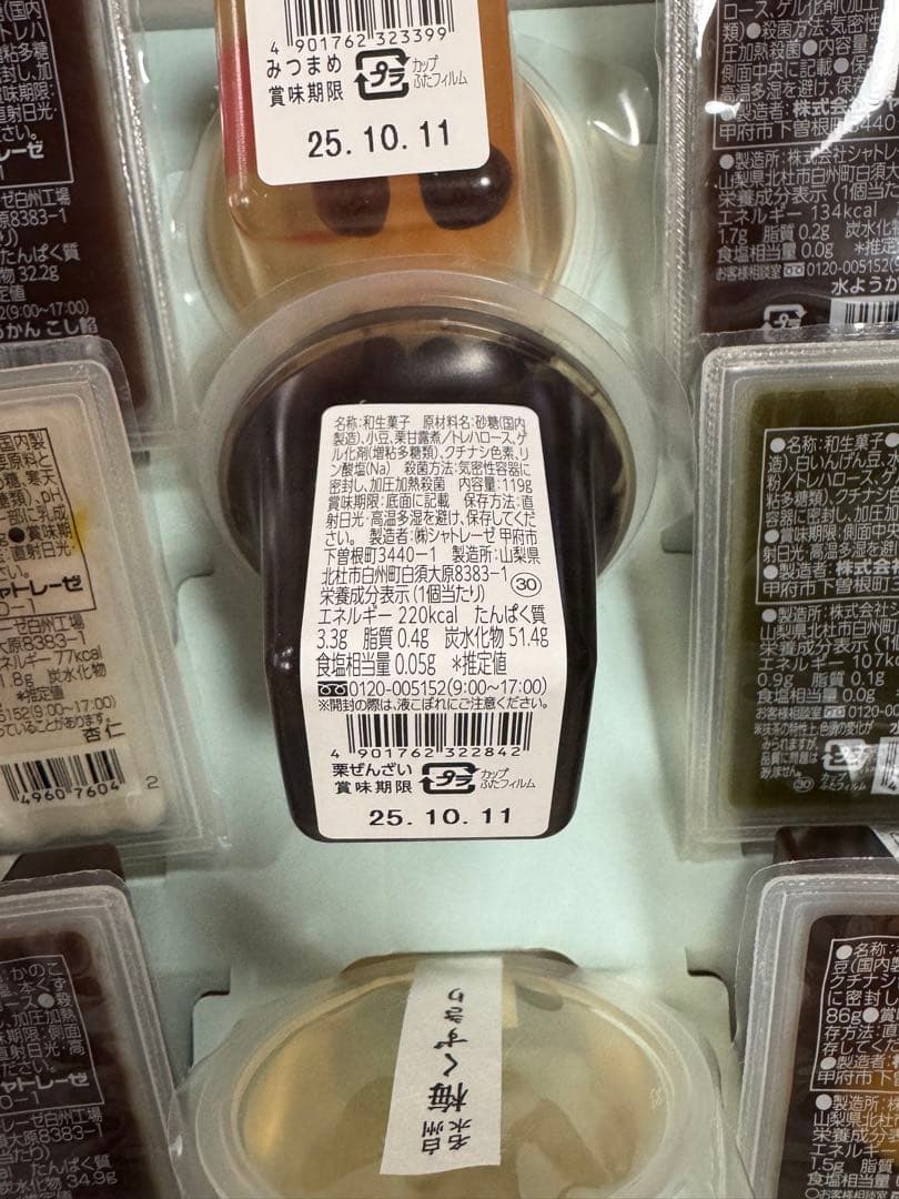 シャトレーゼ尾白のせせらぎ水ようかん他詰め合わせ12個入。