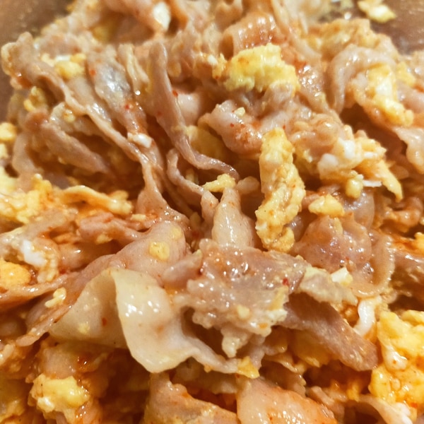 『豚キムチのふんわり卵炒め』ご飯に合う!まろやかな味わい♪。
