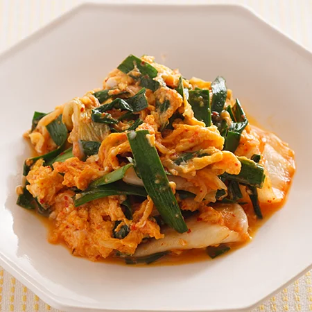 豚肉とふんわり卵のキムチ炒めのレシピ・作り方プロに教わるおいしいレシピ オレンジページ.net。
