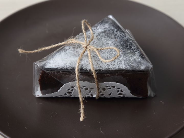 ガトーショコラのおしゃれラッピング!三角,四角のカット別包装。