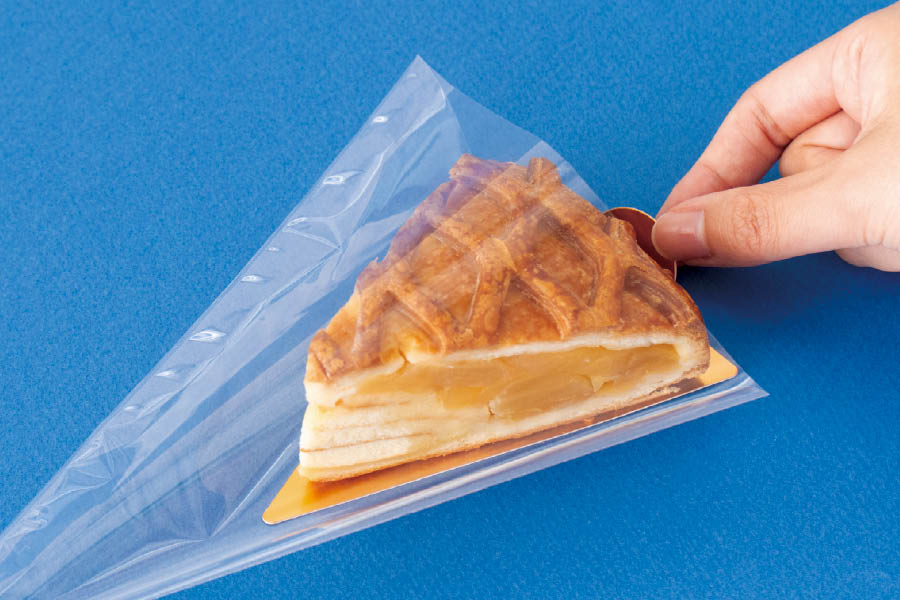 基本のチーズケーキのラッピング三角カット・ホール・スティックの包み方富澤商店オンラインショップ。