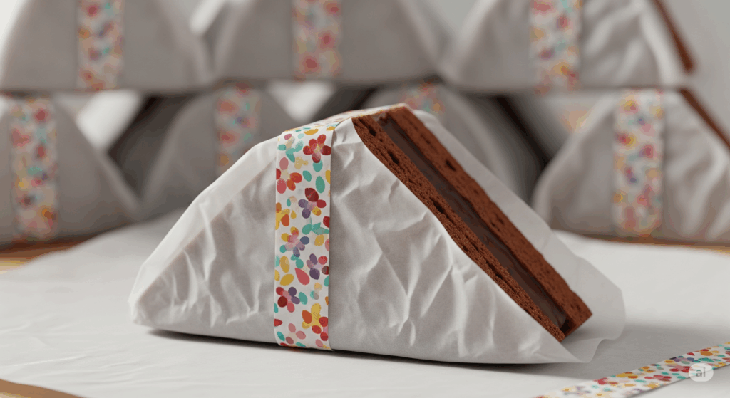 ガトーショコラ三角ケーキのラッピング方法とアレンジテクニック。