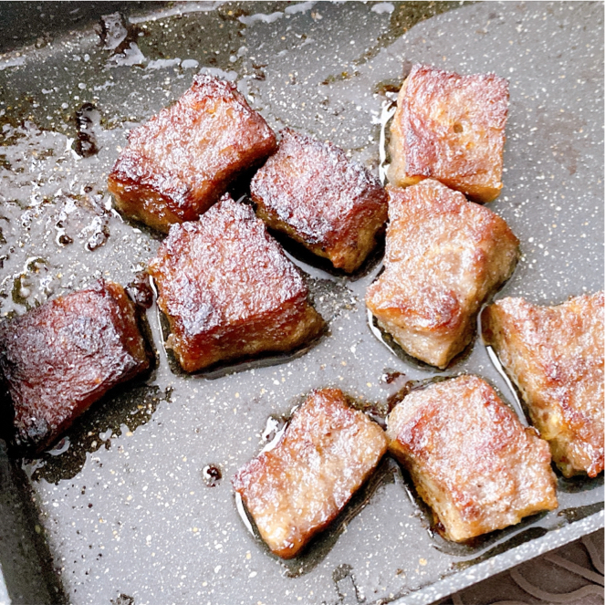 冷凍サイコロステーキの絶品焼き方!成型肉の美味しい焼き方の秘訣とは!パイナレブログ。
