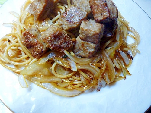 冷凍の成型肉でも美味しいサイコロステーキ生姜焼き♪。