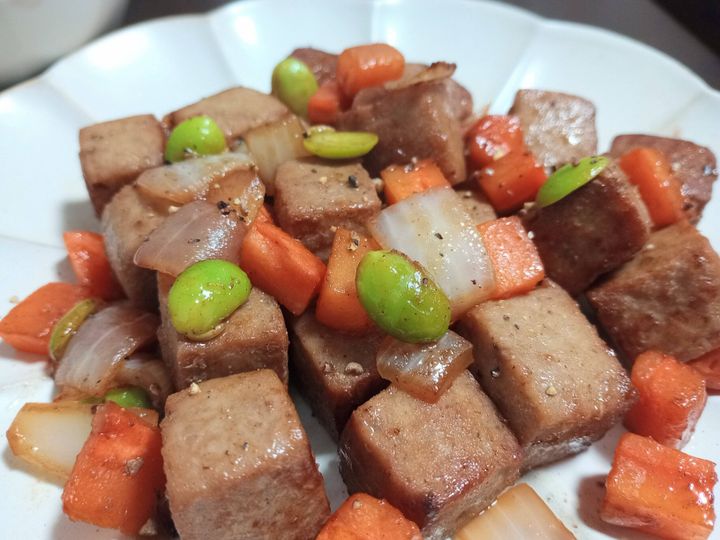 キャンディママ on X: "成型肉のサイコロステーキを綺麗に焼く方法ないかな。 油がすごく出て、サイコロじゃない形になる成型肉サイコロステーキhttps:t.co 8I9cfHbm25"X。
