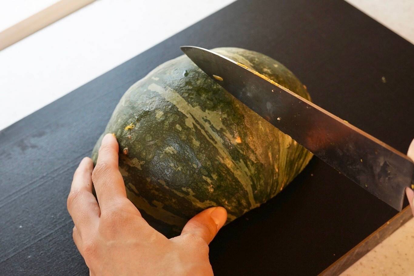硬い丸ごとのかぼちゃを切りやすくするコツをご紹介!デリッシュキッチン。