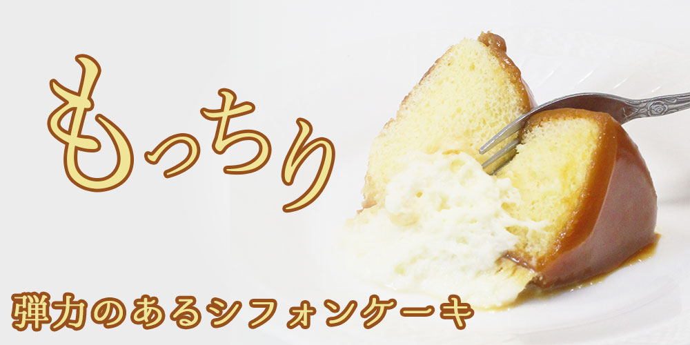マーサービスの 生キャラメルシフォンケーキ を妄想して作ってみました。米粉の卵白シフォンケーキです。行列のできるシフォンケーキ専門店MERCERbis グルテンフリーで作ってみました。再現レシピ。