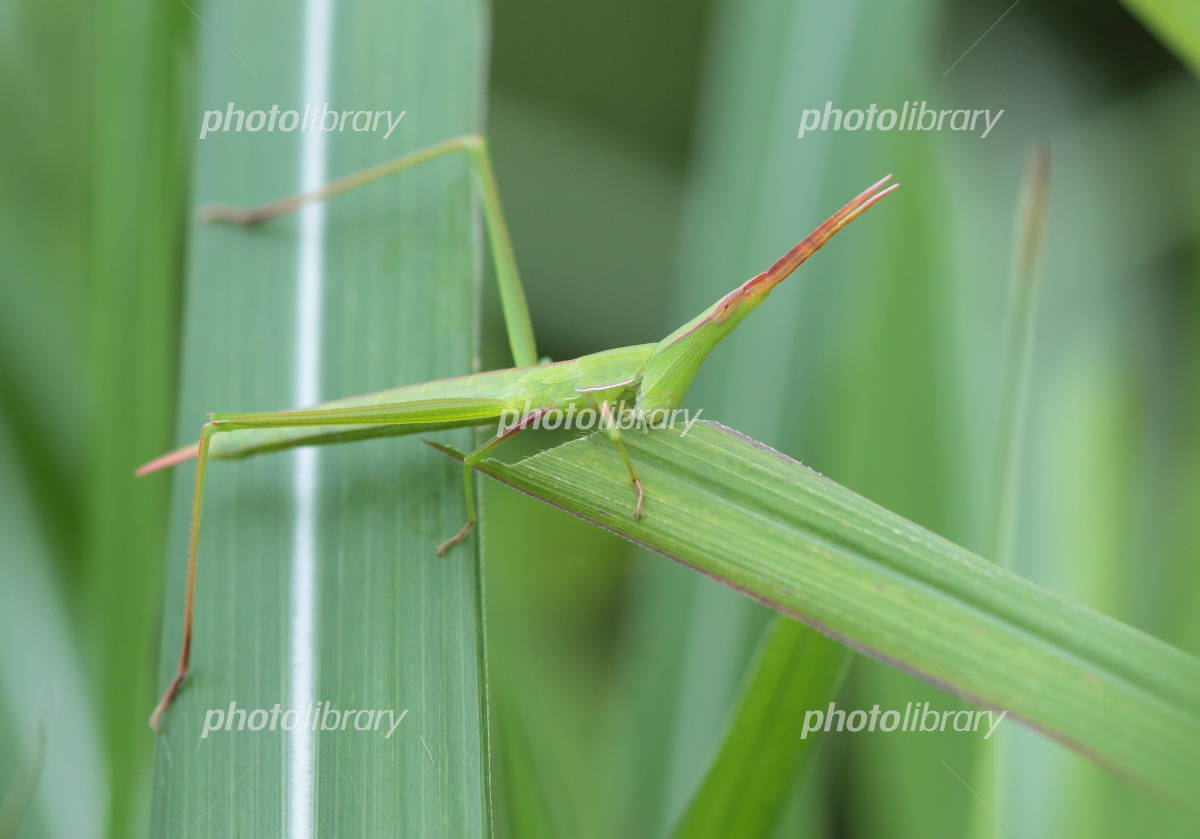 ショウリョウバッタ、ススキの葉を食べる 32053017010 の写真・イラスト素材アマナイメージズ。