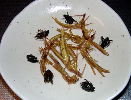 065 ショウリョウバッタとマメコガネの素揚げ昆虫料理研究会。