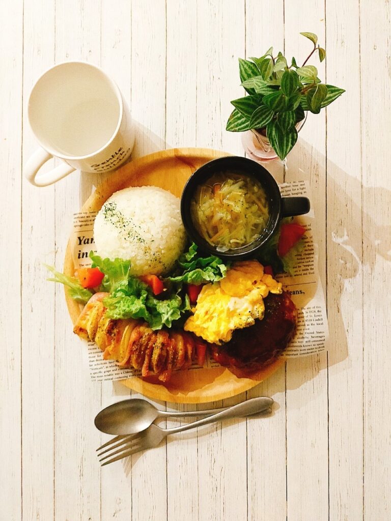おうちカフェで楽しむハンバーグプレートのレシピ😊。
