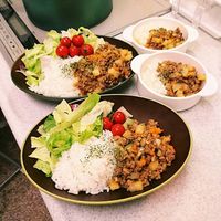 煮込みハンバーグとコロッケのワンプレートごはん晩ご飯 おうちごはん 家庭料理 おうちカフェ ハンバーグ ゆかりSnapdish スナップディッシュID:Xny0za。