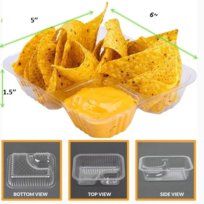 2つのコンパートメントBOPS透明使い捨てポテトチップス大型プラスチック22オンス食品容器。