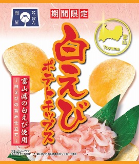 富山湾産白えびポテトチップス」「高知県産青のりポテトチップス」3月28日から店頭販売しておりますトモシアホールディングス株式会社。