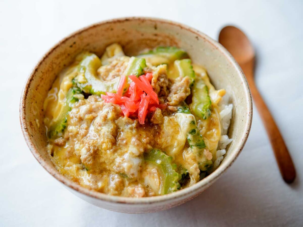 材料ほぼ3つ!簡単うまい昼レシピ 89 ゴーヤとひき肉とたまご丼イエモネ。